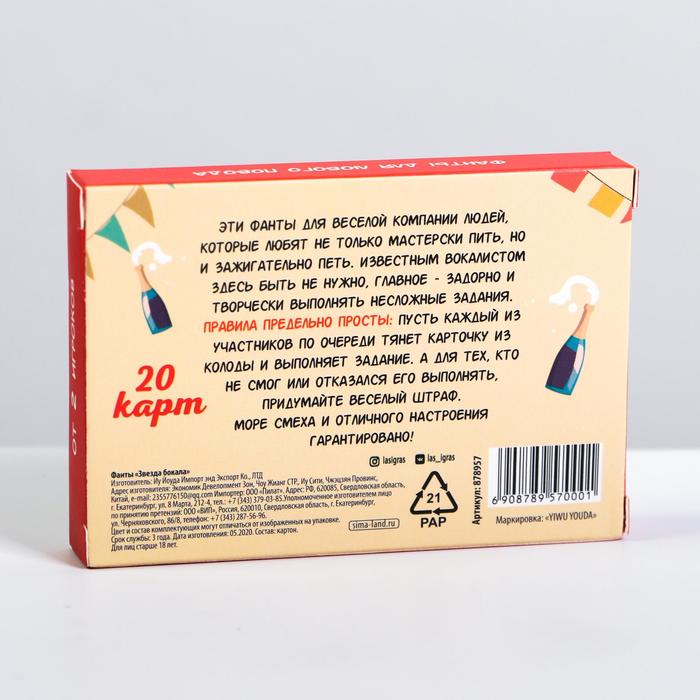 Купить игра для компании "фанты звезда бокала" 20 карт от 120 руб. с доставкой до пункта выдачи в Советске. Интернет магазин ДекаМаркет. Оплата при получении.