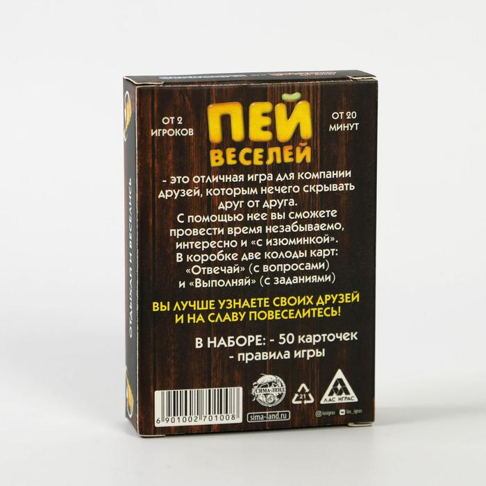 Купить игра для компании "пей веселей" 50 карт от 180 руб. с доставкой до пункта выдачи в Советске. Интернет магазин ДекаМаркет. Оплата при получении.